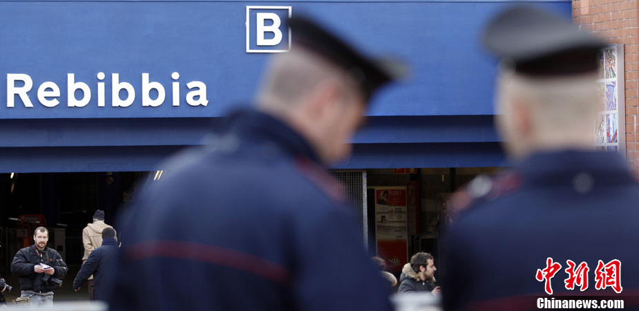 12月21日,意大利羅馬,運(yùn)輸員工當(dāng)天在一節(jié)地鐵空車廂里發(fā)現(xiàn)了一個(gè)裝有將要爆炸的炸彈包裹,隨后被安全人員拆除。圖為21日,在意大利羅馬,一輛地鐵即將到站。