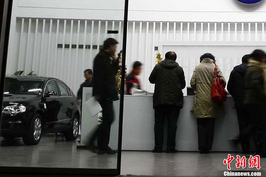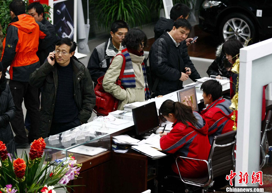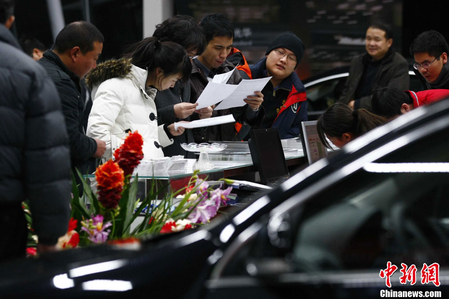 12月23日夜,北京民眾連夜排隊(duì)購置新車。當(dāng)日下午,北京市人民政府新聞辦公室召開“北京交通改善措施”新聞發(fā)布會(huì),正式公布了《關(guān)于進(jìn)一步推進(jìn)首都交通科學(xué)發(fā)展 加大力度緩解交通擁堵工作的意見》,將實(shí)行綜合措施治理交通擁堵。其中,2011年度北京小客車總量額度指標(biāo)控制為24萬個(gè),牌照通過搖號(hào)無償分配的政策成為民眾關(guān)注的焦點(diǎn)。中新社記者 富田 攝