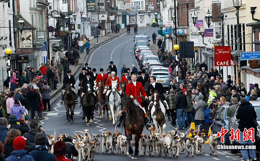 當地時間12月27日,英格蘭東南部肯特郡舉行了盛大的節禮日狩獵活動開幕式。眾多英國傳統狩獵愛好者攜帶獵犬參加了這一活動。