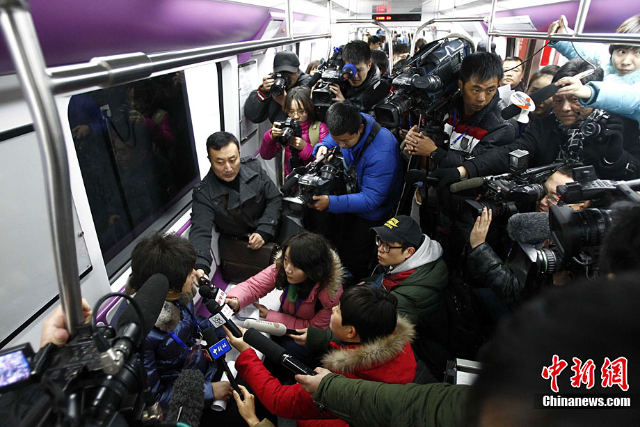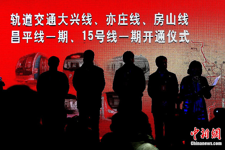 12月30日,北京5條地鐵新線開門迎接乘客。這5條地鐵線路包括房山線、昌平線一期、15號線一期、亦莊線和大興線,總長度達108公里。上述地鐵線路全部開通后,北京市軌道交通運營里程將首次突破300公里。中新社記者 富田 攝
