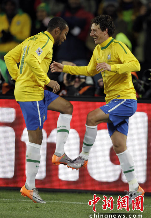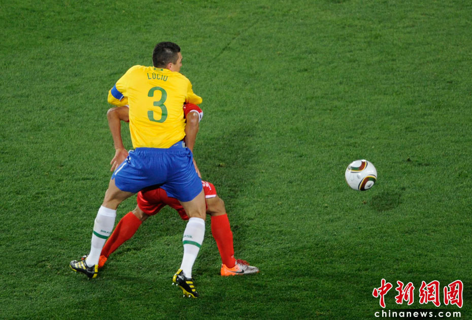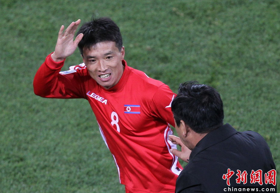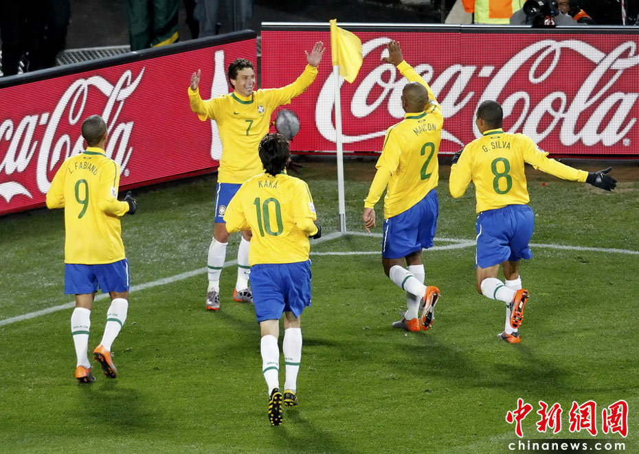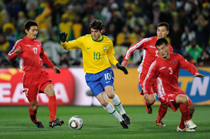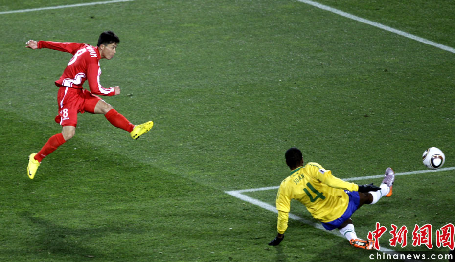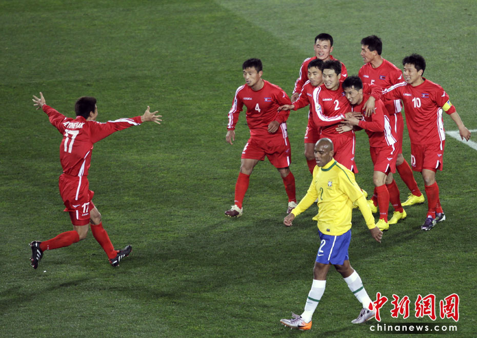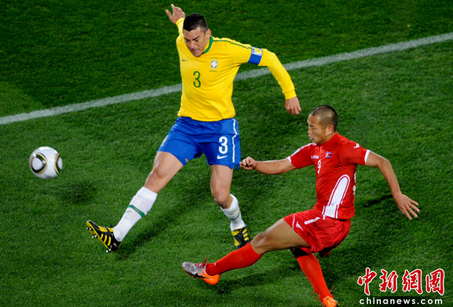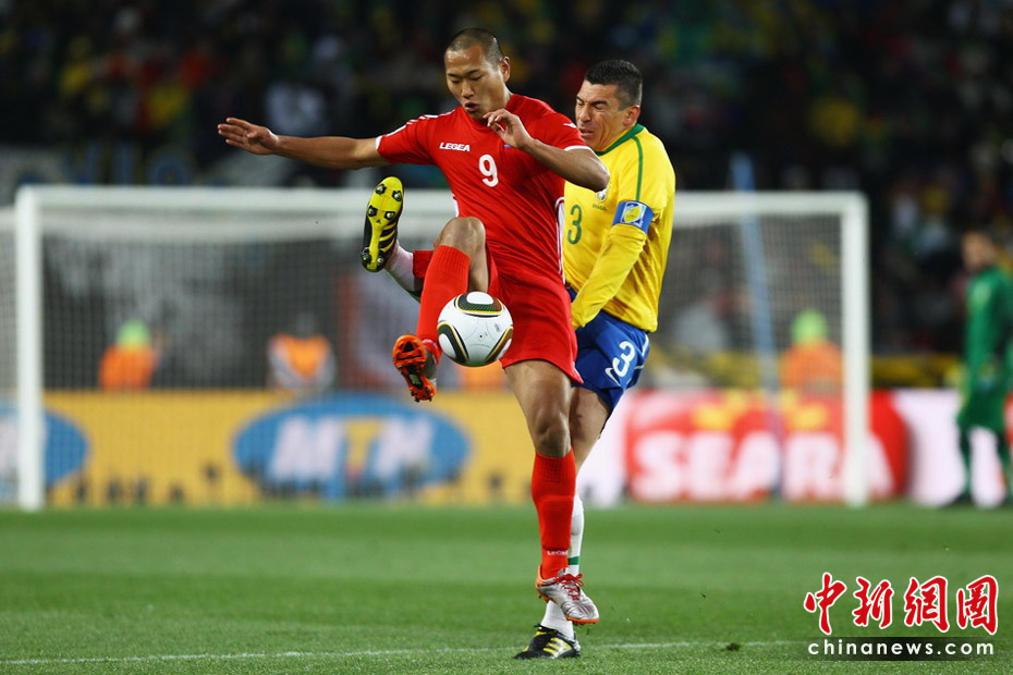 北京時間6月16日凌晨2:30進行的一場世界杯小組賽G組的較量中,巴西隊迎來了朝鮮隊。最終經過90分鐘激戰,巴西隊2-1擊敗朝鮮,贏得南非世界杯開門紅。中新社記者 廖攀 攝