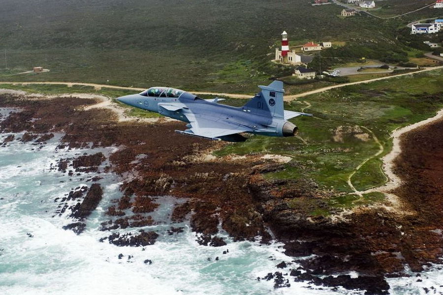 南非空軍五架“銀隼”戰(zhàn)斗機(jī)和“鷹獅”戰(zhàn)斗機(jī)在世界杯開幕式上從足球城球場(chǎng)上空飛過,進(jìn)行了炫目的飛行表演,從而拉開了世界杯開幕式的序幕。圖片來源:中國軍網(wǎng)