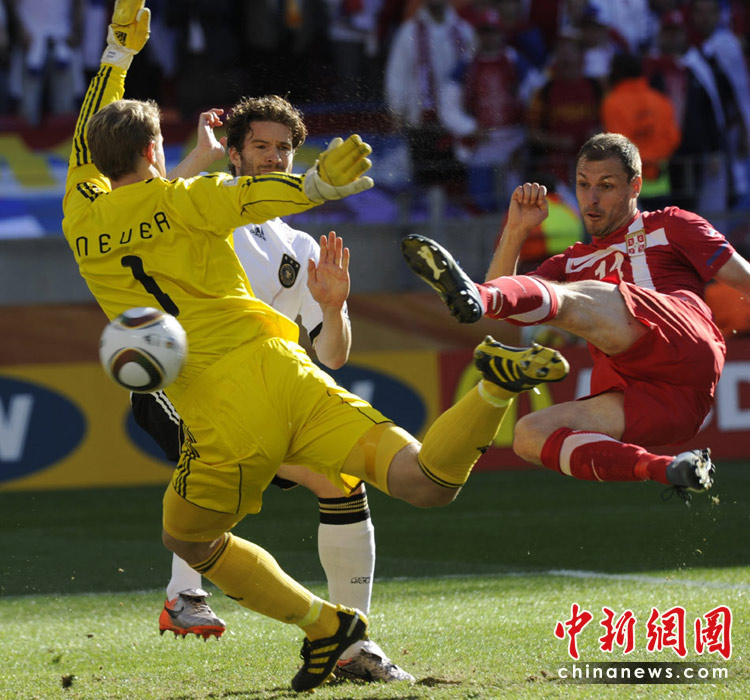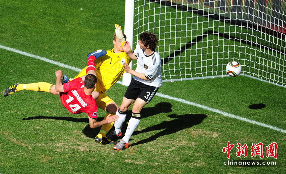 北京時間6月18日晚19:30分,世界杯小組賽D組德國迎戰塞爾維亞。德國前鋒克洛澤累計兩張黃牌被罰下場,比賽38分鐘塞爾維亞隊約萬諾維奇頭球率先破門破門。此后比賽中,德國隊獲得一次點球機會,波多爾斯基主罰,但他罰出的球被塞爾維亞門將斯托伊科維奇撲出。最終塞爾維亞1:0戰勝德國隊。