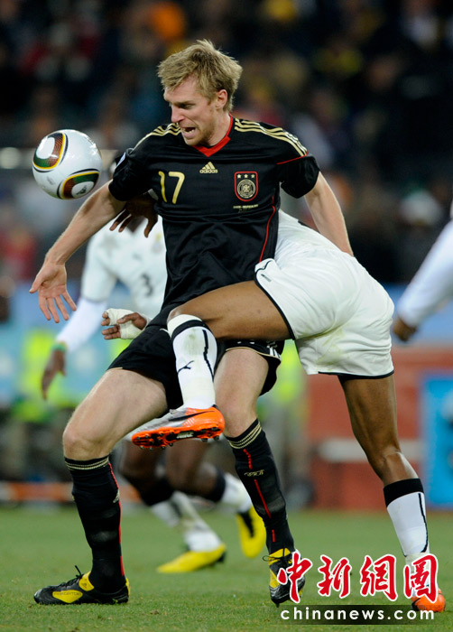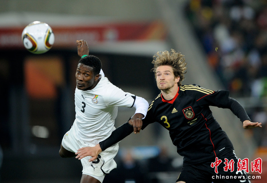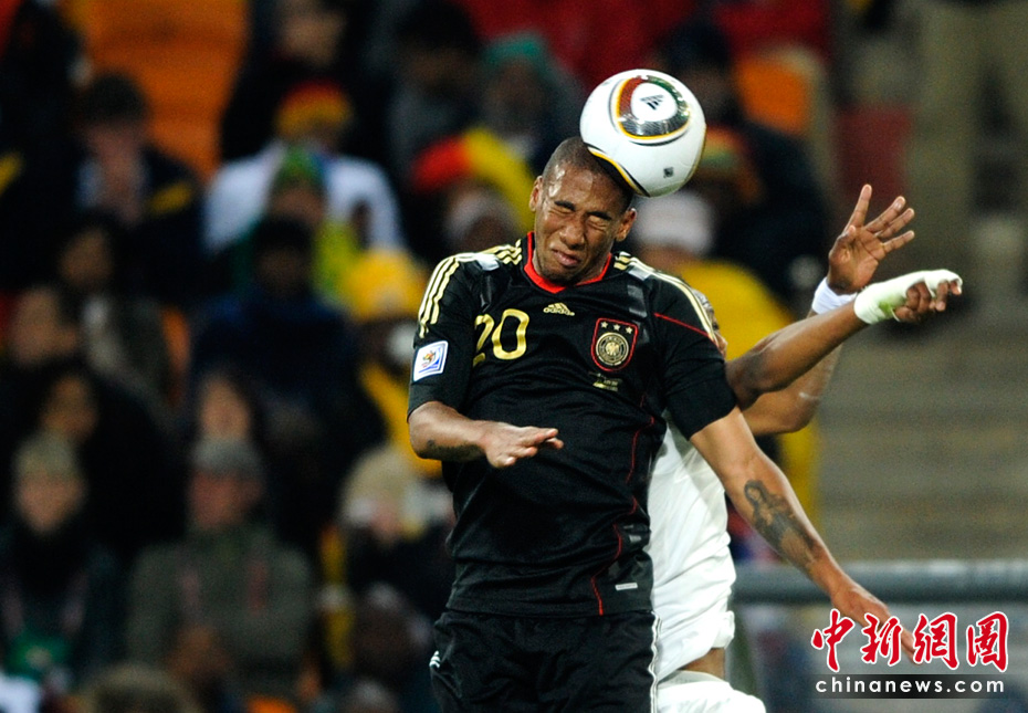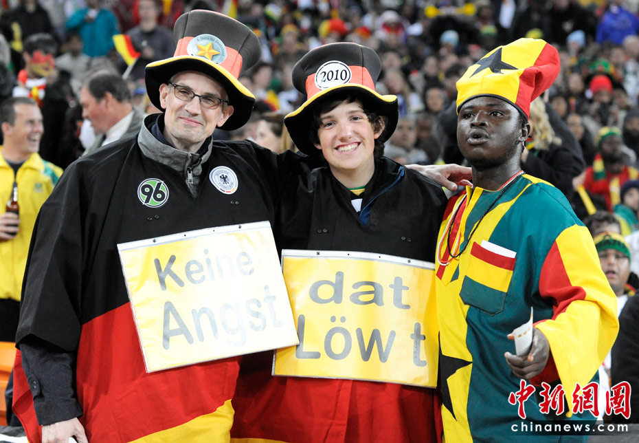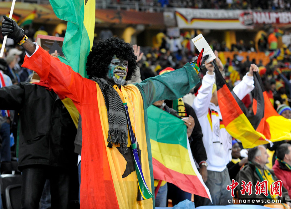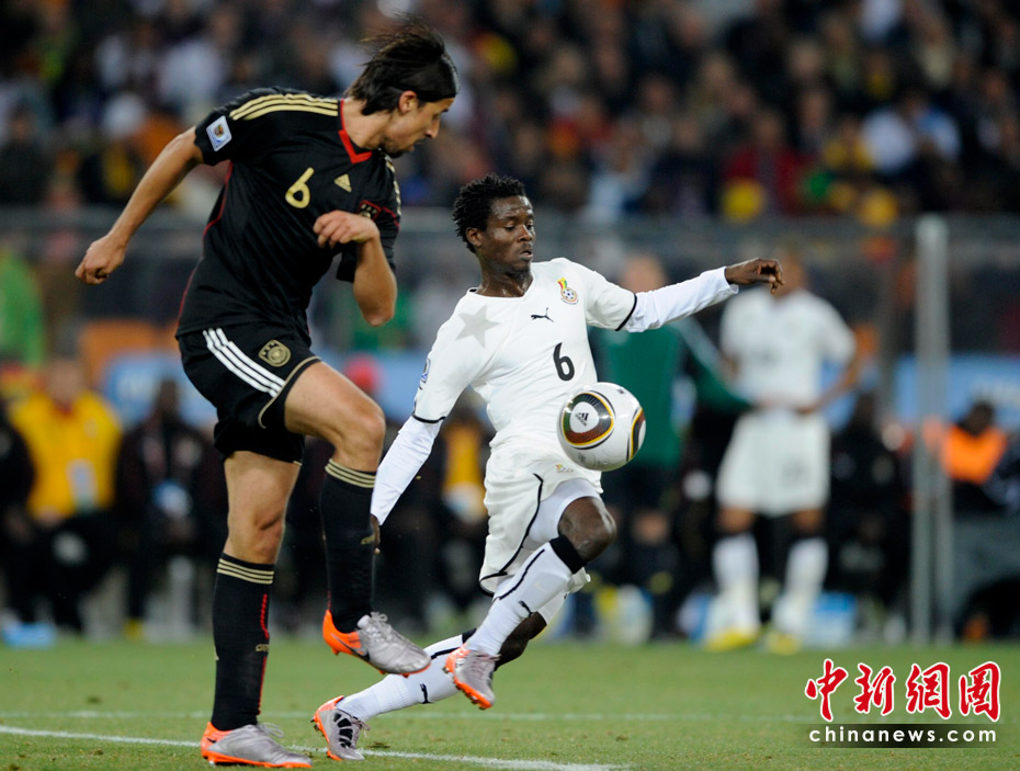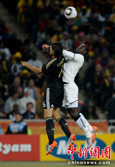 北京時間24日凌晨,世界杯小組賽D組迎來“決戰之夜”。歐洲勁旅德國隊在約翰內斯堡足球城體育場迎戰加納隊。最終,憑借著中場球員厄齊爾的制勝一球,德國隊1比0擊敗加納隊,兩隊攜手進軍16強。德國隊三戰2勝1負排名小組第一,他們在1/8決賽的對手將是老冤家英格蘭隊。加納隊小組第二出線,將與美國隊爭奪一個八強席位。中新社記者 廖攀 攝