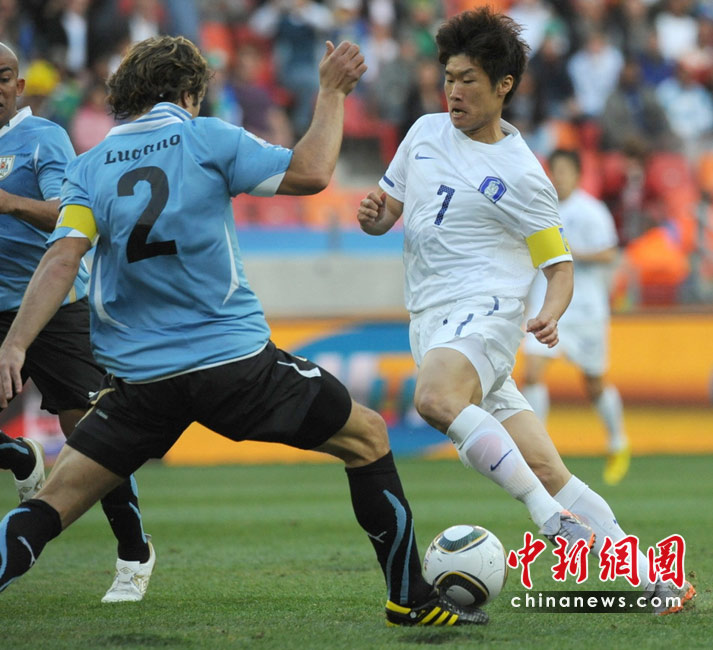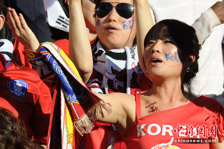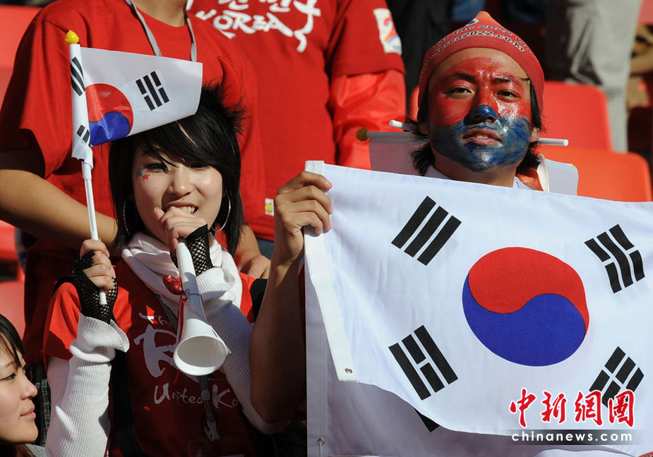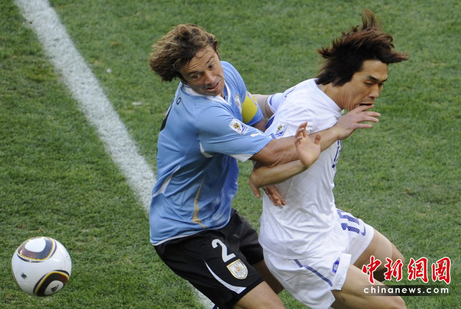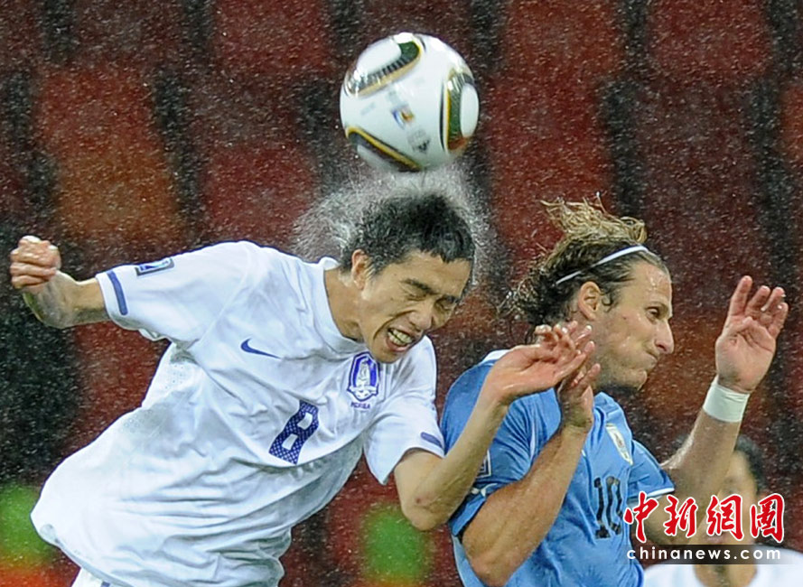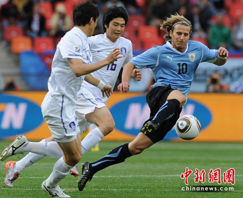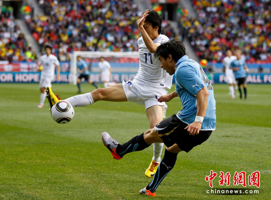在26日晚進行的一場世界杯1/8決賽中,韓國隊在伊麗莎白港的納爾遜·曼德拉球場迎戰墨西哥。烏拉圭隊憑借蘇亞雷斯在上下半場的兩粒入球,以2-1擊敗韓國隊,率先晉級八強。