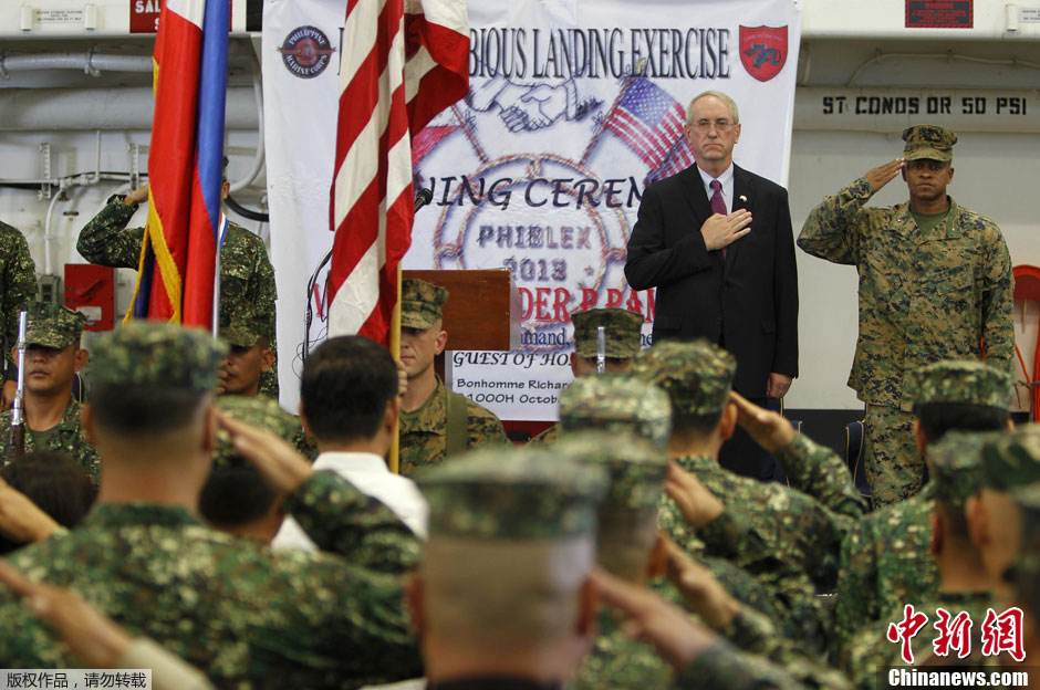 當(dāng)?shù)貢r(shí)間10月8日,菲律賓蘇比克灣,菲律賓武裝部隊(duì)與美國士兵當(dāng)日開始為期10天的兩棲登陸演習(xí),加強(qiáng)雙方的防務(wù)合作。演習(xí)的內(nèi)容主要包括人道主義救助、災(zāi)難應(yīng)對方案、海洋安全及地區(qū)開發(fā)。