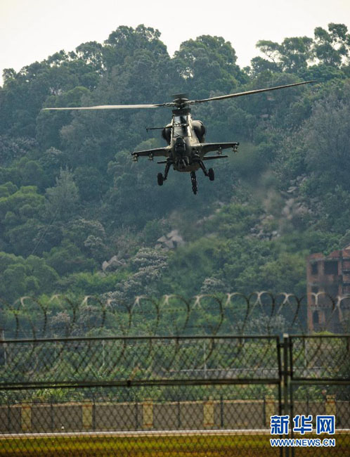 2012年11月11日,國產武直10武裝直升機在珠海三灶機場進行飛行訓練。當日,我國自主研制生產的武直10武裝直升機在珠海三灶機場進行了約20分鐘的適應性飛行訓練,做出倒飛、萊維斯曼機動、高速大角度俯沖、低空小半徑盤旋等動作,展現出其優異性能,引來航展現場觀眾頻頻喝彩。楊光 攝 圖片來源:新華網