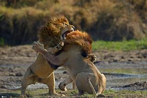 兩頭雄獅上演“全武行”