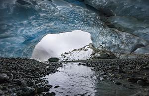 瑞士冰川末端形成巨大冰洞