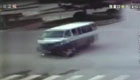 監拍:摩托車闖紅燈被撞 遭面包車推行數十米