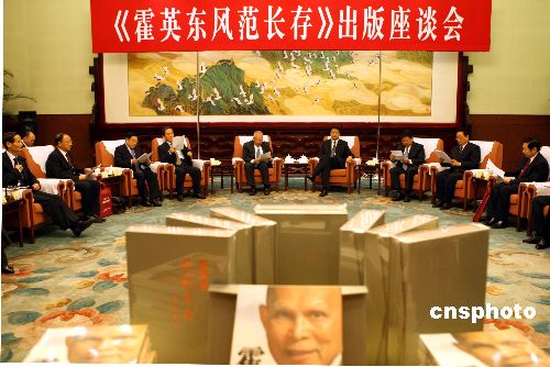 為緬懷和追思霍英東先生,由政協全國委員會辦公廳組織征編、中國文史出版社出版的《霍英東風范長存》一書在霍英東先生逝世一周年之際正式出版。十月三十一日,該書出版座談會在北京全國政協禮堂舉行。中新社發 任海霞 攝