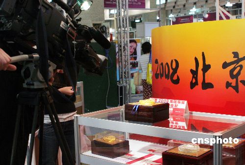 11月15日,“文筆第26屆臺北禮品展”于11月14日開幕。作為北京奧運紀念幣在臺灣獨家代理商的臺灣大洋公司,在展會上共展出十多類近百種貴金屬投資收藏紀念幣,其中多數是北京奧運金銀紀念幣和大陸歷年發行的“熊貓金幣”,還包括全球第一套以奧運主場館為主題的貴金屬收藏品北京奧運“金銀鳥巢”,自上月下旬首發以來首度在臺灣亮相。中新社發 黃少華 攝