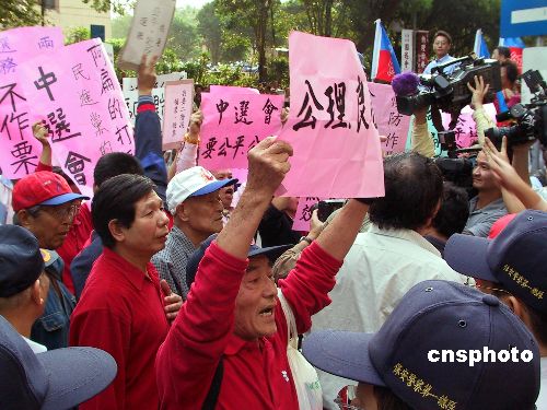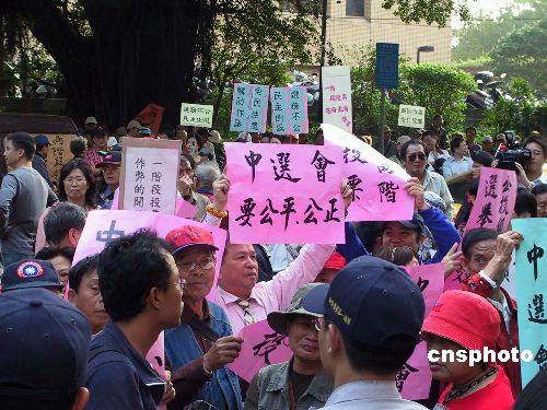 圖:臺(tái)灣民眾到"中選會(huì)"所在辦公大樓下表達(dá)訴求