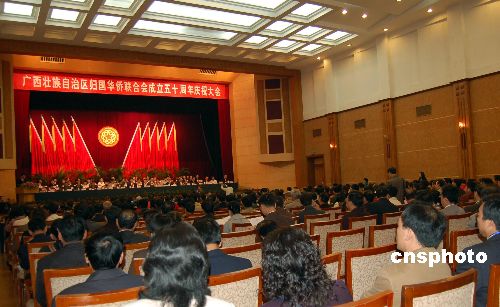 十一月二十八日,廣西壯族自治區歸國華僑聯合會成立五十周年慶祝大會在南寧舉行。東盟各國、美國和港澳等近二十個國家和地區的華人華僑代表和廣西各界人士共四百人出席大會,中國僑聯副主席李祖沛在會上講話,中共廣西區委員會書記劉奇葆發信祝賀。中新社發 劉萬強 攝