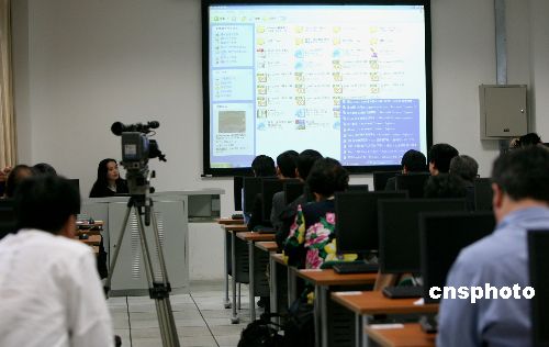 十一月二十九日,中國(guó)人民大學(xué)新聞學(xué)院副院長(zhǎng)彭蘭,在該院為“第三期海外華文媒體高級(jí)研修班”學(xué)員做題為“網(wǎng)絡(luò)與新媒體技術(shù)”專題講座。中新社發(fā) 張勤 攝