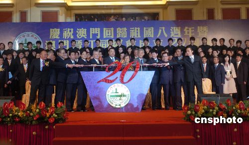 十二月六日晚,澳門晉江同鄉會在威尼斯人宴會廳舉行聯合晚宴,慶祝澳門回歸八周年暨澳門晉江同鄉會成立二十周年,四千多位海內外各界人士出席。中新社發 史利 攝