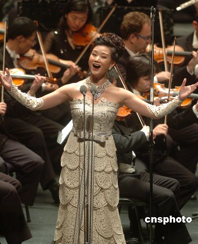 十二月二十日晚,“慶祝澳門回歸祖國八周年音樂會”在澳門文化中心舉行,澳門樂團與澳門演藝學院合唱團同臺演出,共慶回歸,著名歌唱家宋祖英也高歌了一曲《茉莉花》。中新社發 史利 攝