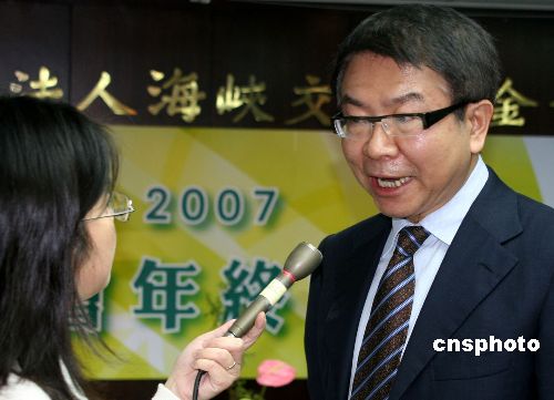 十二月二十七日,臺(tái)灣海基會(huì)在臺(tái)北舉行二00七年終記者會(huì)。圖為海基會(huì)董事長(zhǎng)洪奇昌會(huì)后接受記者采訪。中新社發(fā) 董會(huì)峰 攝