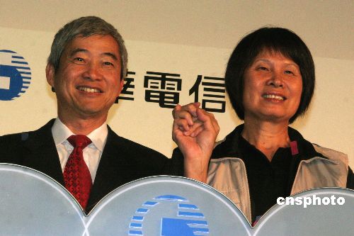 獨(dú)家取得二00八北京奧運(yùn)會(huì)臺(tái)灣區(qū)“新媒體”轉(zhuǎn)播權(quán)的臺(tái)灣中華電信公司,將整合三個(gè)網(wǎng)絡(luò)平臺(tái),以先進(jìn)技術(shù)轉(zhuǎn)播這一國(guó)際體育盛會(huì)。十二月二十七日,中華電信董事長(zhǎng)賀陳旦(左)、“亞洲羚羊”紀(jì)政出席臺(tái)北記者會(huì),介紹相關(guān)情況。中新社發(fā) 董會(huì)峰 攝