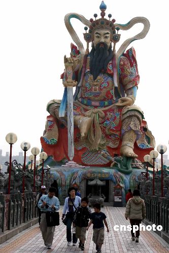 圖為元旦節前人氣頗旺的元帝廟,這里擁有東南亞最高水上神像——“北極玄天上帝”。
