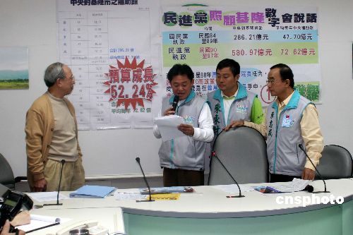 一月九日,距臺灣第七屆“立委”選舉只有三天,選戰猶酣。“立法院”雖處于休會期,但也不得消停,同樣彌漫著選戰的氣氛。圖為民進黨的侯選人在其“立法院”黨團辦公室舉行記者會,開展競選文宣攻勢。中新社發 陳立宇 攝