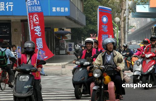一月十日,距離臺灣“立委”選舉日只有兩天,臺北選戰進入白熱化。圖為一名“立委”候選人的選務團隊,將拉票彩旗插在摩托車上穿梭于臺北街頭造勢。中新社發 孫自法 攝