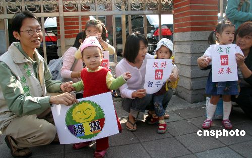 一月十一日,為動植物代言、以環保訴求為特色的臺灣綠黨,在臺北“立法院”門外舉行選前造勢活動,帶著一群沒有投票權的孩童,呼吁選民為下一代投票給綠黨。臺灣“立委”選舉只剩最后一天,島內大小黨派開始選前沖刺。中新社發 孫自法 攝