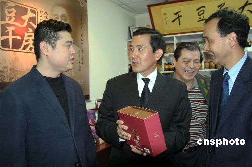 一月十三日,中國國民黨二00八年臺灣“大選”參選人馬英九,在結(jié)束拜謁蔣經(jīng)國陵寢行程后,順便走訪桃園縣大溪老街。中新社發(fā) 孫自法 攝