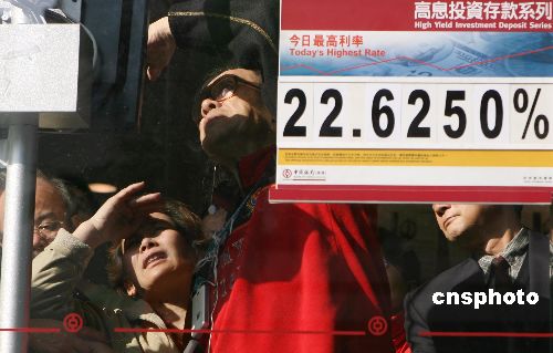 一月二十二日,港股跌二千零六十一點收市,創歷來最大點數跌幅。圖為當日香港股民在銀行關注股市最新動態。中新社發 武仲林 攝