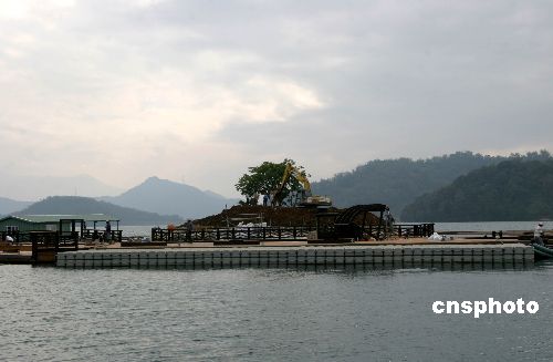 一月二十二日,日月潭中唯一島嶼——拉魯島正處于緊鑼密鼓的重新規劃建設當中。日月潭整體水位升高后,拉魯島面積也縮小很多,島上邵族原住民已全部遷移到日月潭岸邊居住生活。中新社發 孫自法 攝
