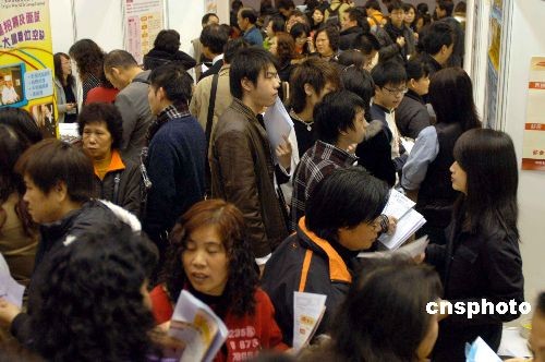 二月十九日,香港餐飲聯業協會與勞工處一連兩天在天水圍天晴社區會堂舉辦招聘會,為求職人士提供逾二千四百個職位空缺,月薪介乎五千至九千元。中新社發 譚達明 攝