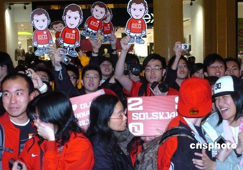 二月二十日,眾多澳門球迷在威尼斯人度假村酒店?duì)庂曼聯(lián)球星的風(fēng)采。當(dāng)日,曼聯(lián)球星索爾斯克亞專程來澳門參加『曼聯(lián)旗艦店』的開業(yè)儀式。『曼聯(lián)旗艦店』專門銷售足球服飾及配件、品牌足球及各類紀(jì)念品,讓顧客感受『曼聯(lián)體驗(yàn)之旅』。中新社發(fā) 史利 攝