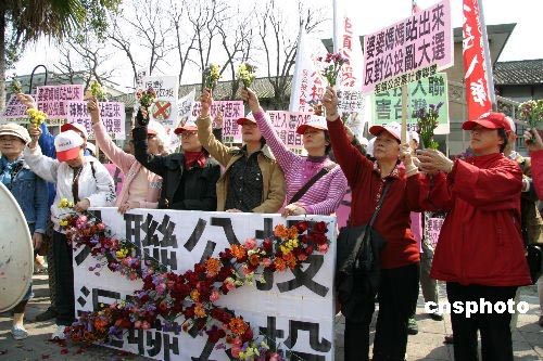 3月6日,三八婦女節(jié)前夕,臺灣婦女團體在臺灣“立法院”前發(fā)起“真愛臺灣,反公投入聯(lián)”活動。中新社發(fā) 曾嘉 攝