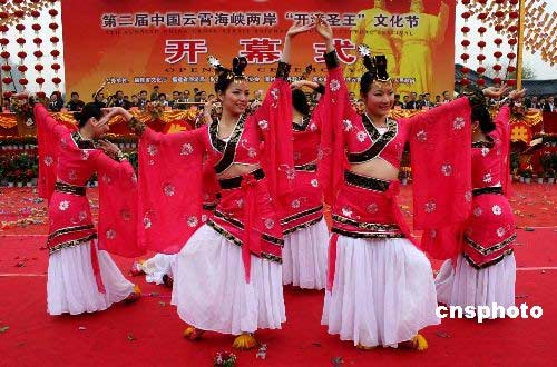 三月二十八日上午,第二屆中國(guó)云霄海峽兩岸“開(kāi)漳圣王”文化節(jié)在福建漳州云霄縣將軍山開(kāi)幕,古典舞、舞龍舞獅等民俗文化助陣表演。來(lái)自美國(guó)、澳大利亞、馬來(lái)西亞、南非、泰國(guó)、新西蘭、新加坡以及中國(guó)香港和臺(tái)灣等十余個(gè)國(guó)家和地區(qū)的海內(nèi)外嘉賓八百多人與會(huì)。中新社發(fā) 沈逸亭 攝