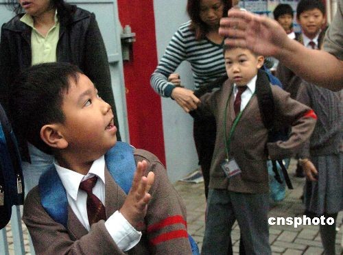 三月三十一日,早前曾有學童病逝的屯門順德聯(lián)誼總會何日東小學的學童回校上課。此前,香港全部小學、幼兒幼兒園和特殊學校停課兩周,以應(yīng)對流感。中新社發(fā) 譚達明 攝