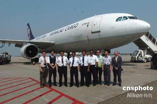 五月十五日,一架滿載臺(tái)灣同胞為四川地震災(zāi)區(qū)捐贈(zèng)的四十三噸救災(zāi)物資的飛機(jī)停在澳門國(guó)際機(jī)場(chǎng)整裝待發(fā)。澳門航空公司免費(fèi)加開的這架空中巴士A300-600R貨機(jī)當(dāng)日中午從臺(tái)北桃園機(jī)場(chǎng)起飛,在澳門國(guó)際機(jī)場(chǎng)作暫短停留后,將飛抵成都雙流國(guó)際機(jī)場(chǎng)。中新社發(fā) 史利 攝