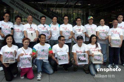 五月十六日,香港無線電視藝員在中環(huán)鬧市為四川大地震災民募款。中新社發(fā) 譚達明 攝