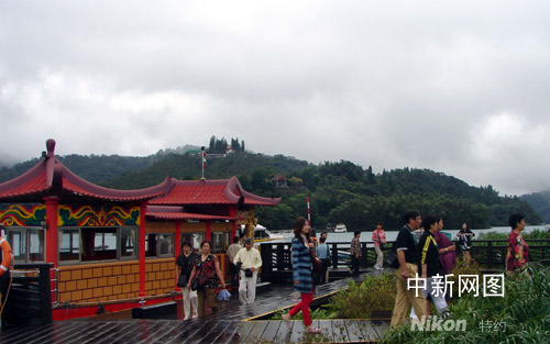九月十三日,臺灣,“森拉克”臺風即將來臨,但記者沿路還是遇到不少大陸游客。圖為日月潭娜魯島上來自上海的四十余人的觀光團。曾福志 攝
