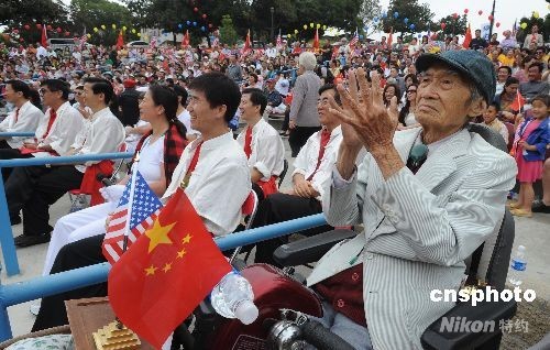 當(dāng)?shù)貢r(shí)間9月21日上午,數(shù)百名洛杉磯華人華僑在華人聚居的蒙特利公園市舉行隆重的升國旗儀式,慶祝中華人民共和國成立59周年。中新社發(fā) 張煒 攝