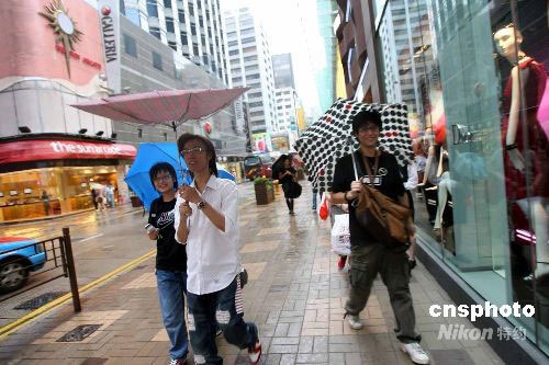 九月二十三日,香港天文臺發出三號強風信號,香港市區狂風暴雨,幼兒園及智障兒童學校停課,海陸空交通受影響。中新社發 洪少葵 攝