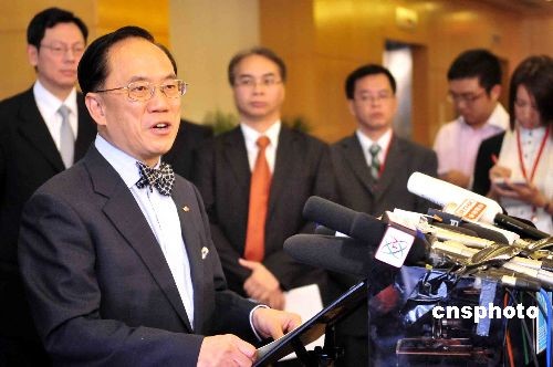 十月二十八日,香港特區(qū)行政長官曾蔭權(quán)在行政會議后會見傳媒,宣布委任經(jīng)濟(jì)機(jī)遇委員會十名成員,由他出任主席,財(cái)政司長曾俊華出任副主席。中新社發(fā) 譚達(dá)明 攝