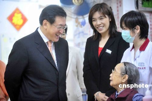 十一月三日上午,香港食物及衛(wèi)生局局長(zhǎng)周一岳,探訪一所護(hù)老中心,了解政府流行性感冒防疫注射計(jì)劃的實(shí)施情況。特區(qū)政府當(dāng)日開始,為高危人士免費(fèi)注射流感疫苗。中新社發(fā) 譚達(dá)明 攝