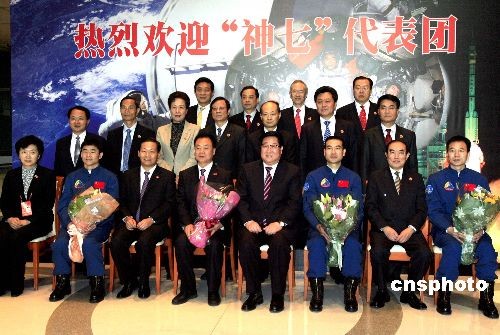 十二月六日,“神舟七號”載人航天飛行代表團拜會中央人民政府駐香港聯絡辦公室(中聯辦)。中新社發 張勤 攝