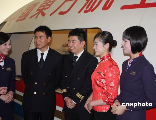 12月12日,東航執飛大陸首班“截彎取直”常態包機機組亮相。航路的“截彎取直”將使航程和時間大大縮短,以上海和南京為例,東航兩岸常態包機將比原有周末包機節省70-80分鐘。據悉,12月15日,航班號為MU2075的東航空客A321飛機將從上海浦東機場起飛前往臺北桃園機場,執飛大陸首班“截彎取直”常態包機。中新社發 上海分社 攝