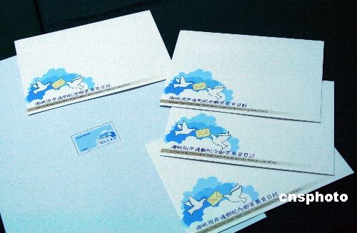 12月15日,臺灣“中華郵政”發行海峽兩岸通郵紀念郵票和首日封。郵票圖案以和平鴿送信為主圖,背景襯以藍天白云,象征兩岸“為民興利、兩岸和平”的共同目標。中新社發 周兆軍 攝