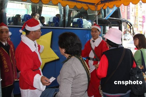 圣誕節(jié)近,臺(tái)北市公交車服務(wù)員也裝扮成圣誕老人,服務(wù)民眾。中新社發(fā) 陳立宇 攝