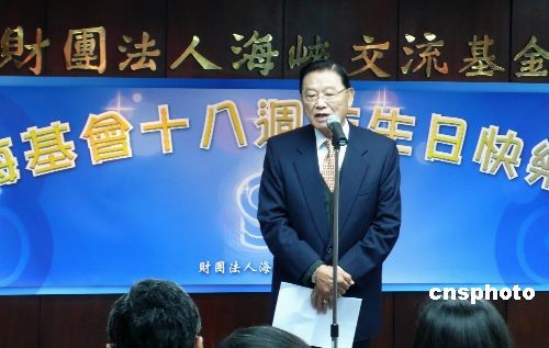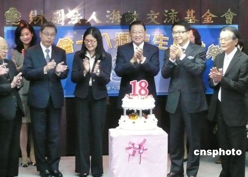 三月九日,臺灣海峽交流基金會在臺北舉辦成立十八周年慶;顒。該會董事長江丙坤表示,兩岸“大三通”基本實現后,其效果逐漸顯現,;鶗磥韺^續推動兩岸制度性協商,共期兩岸和平,經濟繁榮。中新社發 路梅 攝