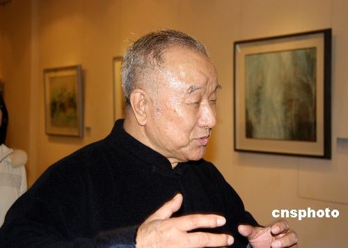 3月14日,宇宙心印——?jiǎng)?guó)松繪畫一甲子開(kāi)幕式典禮在臺(tái)北“國(guó)父紀(jì)念館”舉行。圖為臺(tái)灣著名國(guó)畫家劉國(guó)松在開(kāi)幕式上接受媒體記者采訪。中新社發(fā) 陳立宇 攝