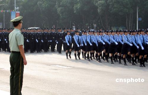 十月十日,廣西南寧舉行安全保衛誓師大會,以確保本月底在南寧召開的第四屆中國—東盟博覽會、中國—東盟商務與投資峰會以及南寧國際民歌藝術節的安全。中新社發 黃念飛 攝