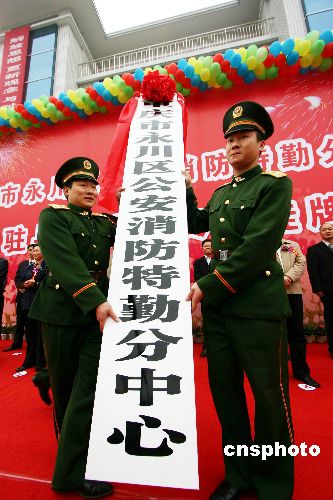 11月6日,重慶市永川區(qū)公安消防特勤分中心落成駐兵暨永川區(qū)公安消防支隊(duì)掛牌儀式在消防特勤分中心新營區(qū)舉行。永川區(qū)公安消防特勤分中心成立后將成為渝西地區(qū)的一支重要的滅火搶險(xiǎn)救災(zāi)力量,是一支反應(yīng)迅速、機(jī)動(dòng)性高、突擊力強(qiáng)的區(qū)域性消防特勤隊(duì)伍,承擔(dān)了永川區(qū)、雙橋區(qū)、榮昌縣、大足縣等渝西區(qū)縣的各種急、難、險(xiǎn)、重任務(wù),成為立足永川,服務(wù)周邊區(qū)縣,承擔(dān)起區(qū)域性消防安全任務(wù)的“保護(hù)神”。中新社發(fā) 陳仕川 攝